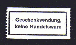 Dieser Aufkleber musste auf die Pakete, die zu Feiertagen und nicht nur dann an die Lieben, an Verwandte, Freunde und Unbekannte geschickt wurden.